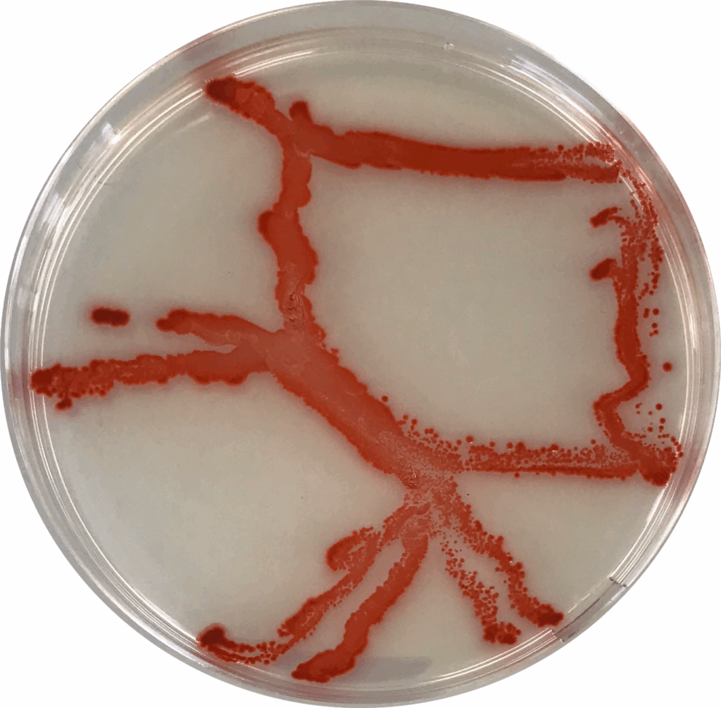 Afin d’obtenir cette couleur rouge nous avons utilisé la souche Serratia marcescens qui donne des