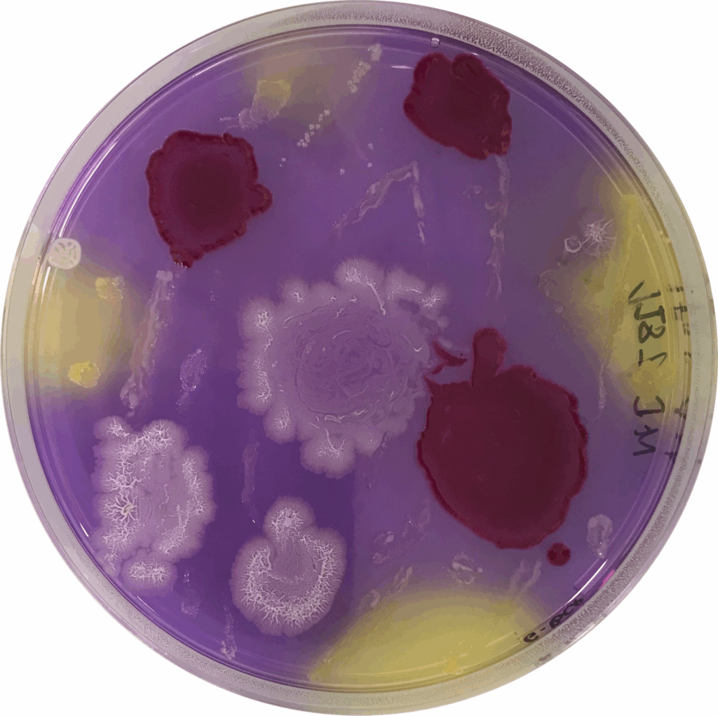 marcescens (Rouge), Bacillus subtillis (Blanc crème)