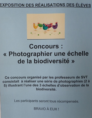 - Concours « Photographier une échelle de la biodiversité » organisé par l’équipe de SVT
