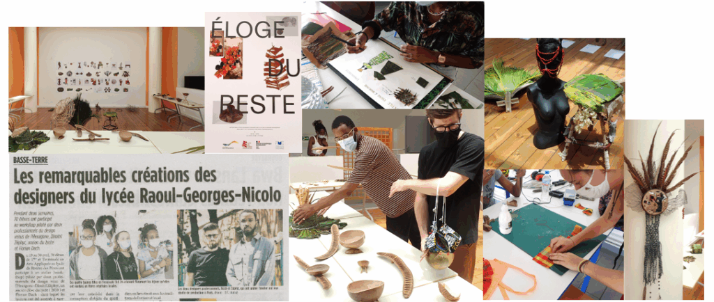 Initié par Mme Nicolas, professeur d’Arts appliqués, le projet « Designers en résidence » consiste à recevoir 2 designers, Dimitri Zephir (un ancien élève de STD2A du lycée qui a eu un brillant parcours) & Florian Dach, du 19 au 30 avril 2021. Les designers interviennent auprès des STD2A et des options Création Culture Design et encadrent un projet pédagogique qui débouche sur une magnifique exposition au CDI : « Eloges du reste » (voir photos). Ils interviennent aussi auprès des STI2D et des spécialités Sciences de l’ingénieur, en leur donnant de précieux conseils pour leur projet de bac.