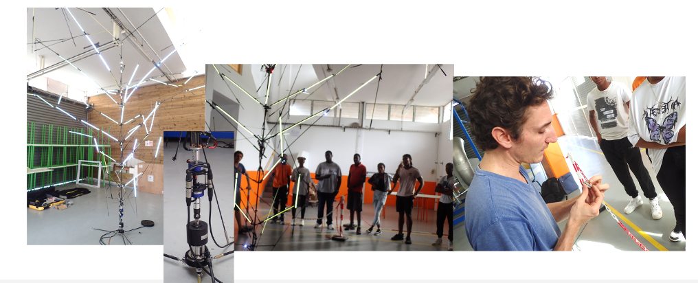 L’artiste a installé la structure « sabbat2 » dans un atelier du lycée. Toute la semaine, les élèves ont pu le rencontrer et appréhender les différents éléments techniques et artistiques de l’œuvre :