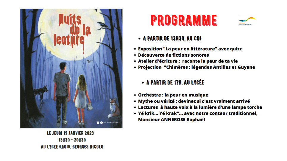 Ce jeudi 19 janvier, lectures à haute voix, atelier d’écriture, fictions sonores accessibles via QR Code, exposition « la peur dans la littérature » avec quizz et animation contée à la nuit tombée…