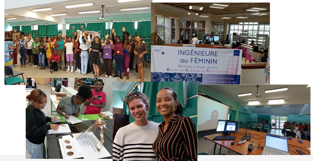 Déclinée de la manifestation nationale FIRST, cet événement unique s’est tenu le jeudi 8 février 2024 à 14h pour la troisième année dans notre lycée et dans notre académie. Nos anciennes élèves du lycée,  Mme Kanell Ambroise, ingénieure en énergie et environnement et Mme Marie Laure Solignac (en visio-conférence), aujourd’hui ingénieure « piping lead », et Mme Sarah Cailloux, étudiante en architecture en milieu tropical (en visio-conférence), ont été les marraines de la manifestation.