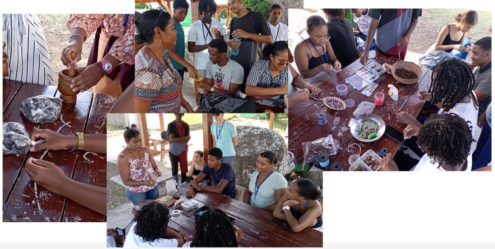 Pour les sections Euro de première et Terminale et en préambule au voyage à la Dominique en avril, Juliana Glasgow, native Kalinago de la Dominique implantée en Guadeloupe, vient pour trois ateliers de 2h, sous les carbets, les mardis 12, 19, et 26 mars. Thèmes choisis : fabrication du Kako, bijoux en graines et perles. Ateliers animés en anglais bien sûr !