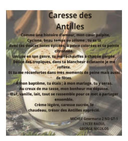 • Concours d’écriture « Des mets et des mots » dans le cadre de la francophonie (Guadeloupe, Sénégal, Côte d’ivoire). Cérémonie de remise des prix à l’Hôtel Auberge de la Vieille Tour au Gosier le lundi 10 juin 2024. 22 productions finalistes en 2nde 1 et 2nde 2 qui figureront dans un livret Académique qui regroupe les 60 meilleures participations. L’élève MICHEE Geormana en 2GT1 s’inscrit dans le palmarès des 10 meilleurs écrits avec son poème sur le CHODÔ guadeloupéen.